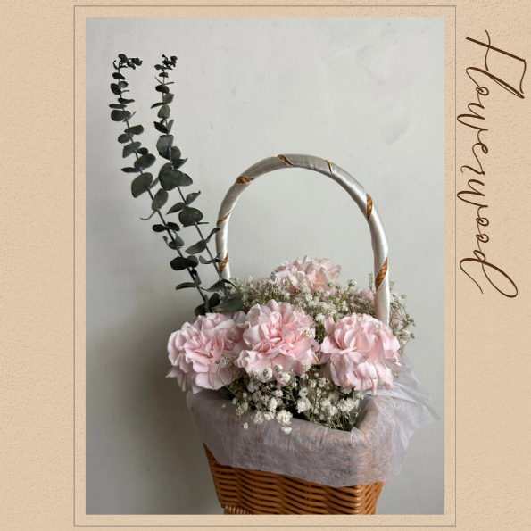 這款粉紅色花將溫柔的粉紅色調融入經典的花籃設計中,營造出一種優雅而浪漫的氛圍。